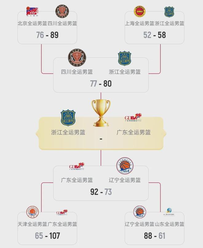 那么全运会决赛,便是广东队VS浙江队。