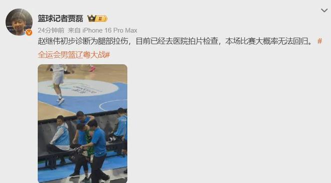 赵继伟受伤了,初步诊断腿部拉伤......