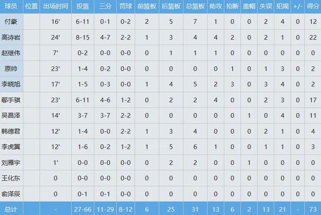 广东队数据如下:
