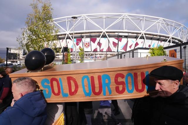 太阳报:西汉姆球迷抬着棺材游行,抗议俱乐部管理层